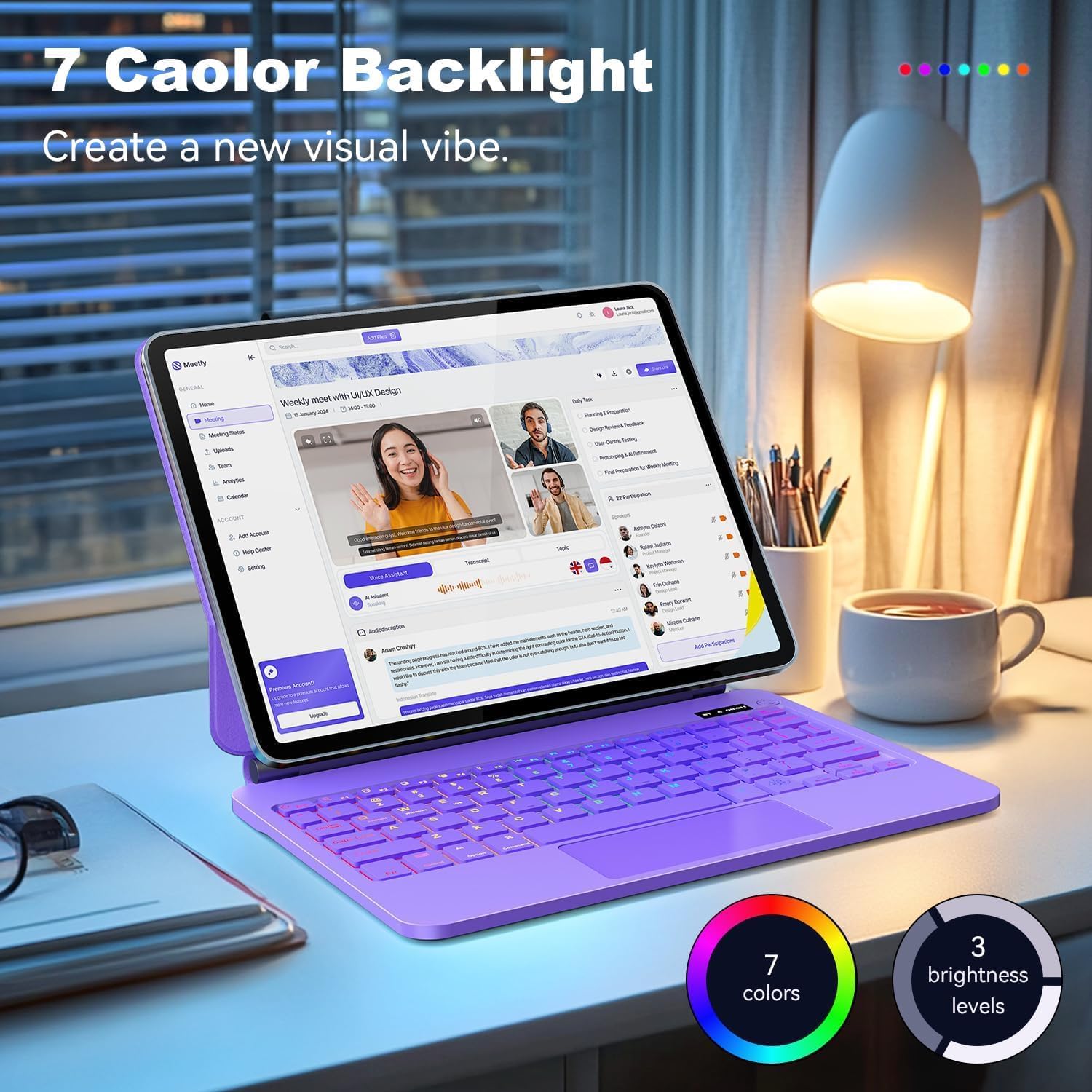 - Backlit Keyboard for iPad Air 13 inch and iPad Pro 12.9: From dawn to dusk, adapt effortlessly! Adjusting 7 backlight and 3 levels of brightness ensures clear visuals in every setting, enhancing your immersive experience. This feature not only adds a touch of style but also makes typing in low-light conditions more comfortable.