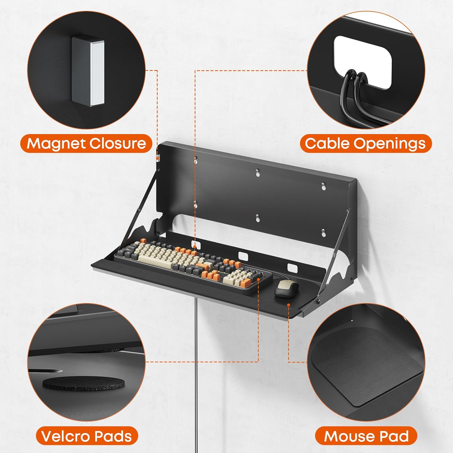 - Heavy-Duty Steel, Holds 22 lbs: Constructed from steel, this wall mounted keyboard tray supports keyboards and mice without bending or wobbling, with a load capacity of up to 22 lbs