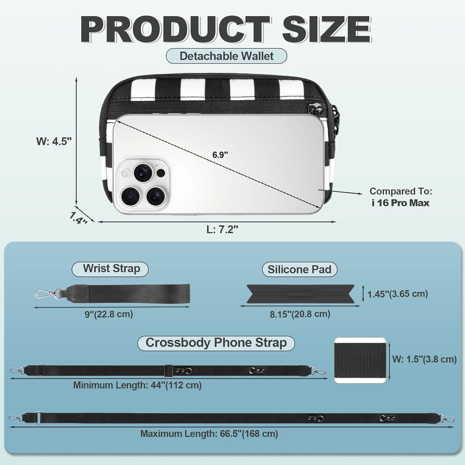 - Customizable Fit for Everyone: This phone strap crossbody is crafted from premiun double-layer nylon, it can be freely adjusted from 44 to 66.5 inches, and features a comfortable 1.3-inch width, providing an ideal fit for all body types - whether you're tall or short, slender or robust. the soft-touch meterial ensures gentle comfort against your skin, while the removable silicone pad ensures all-day comfort when worn crossbody.