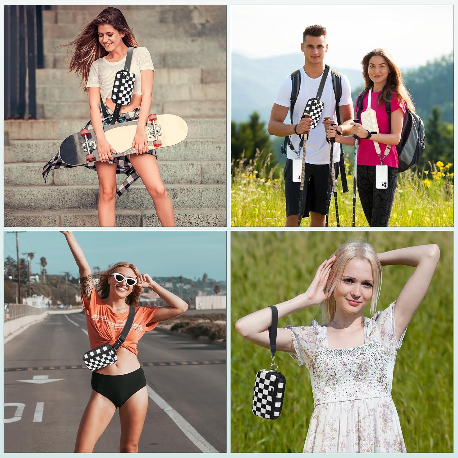 Clip and Go Strap for Phone with Wallet Crossbody, Adjustable Phone Lanyard with Detachable RFID Wristlet Wallet, Phone Strap with Phone Tabs for All Phones, Black Checkered (L)
