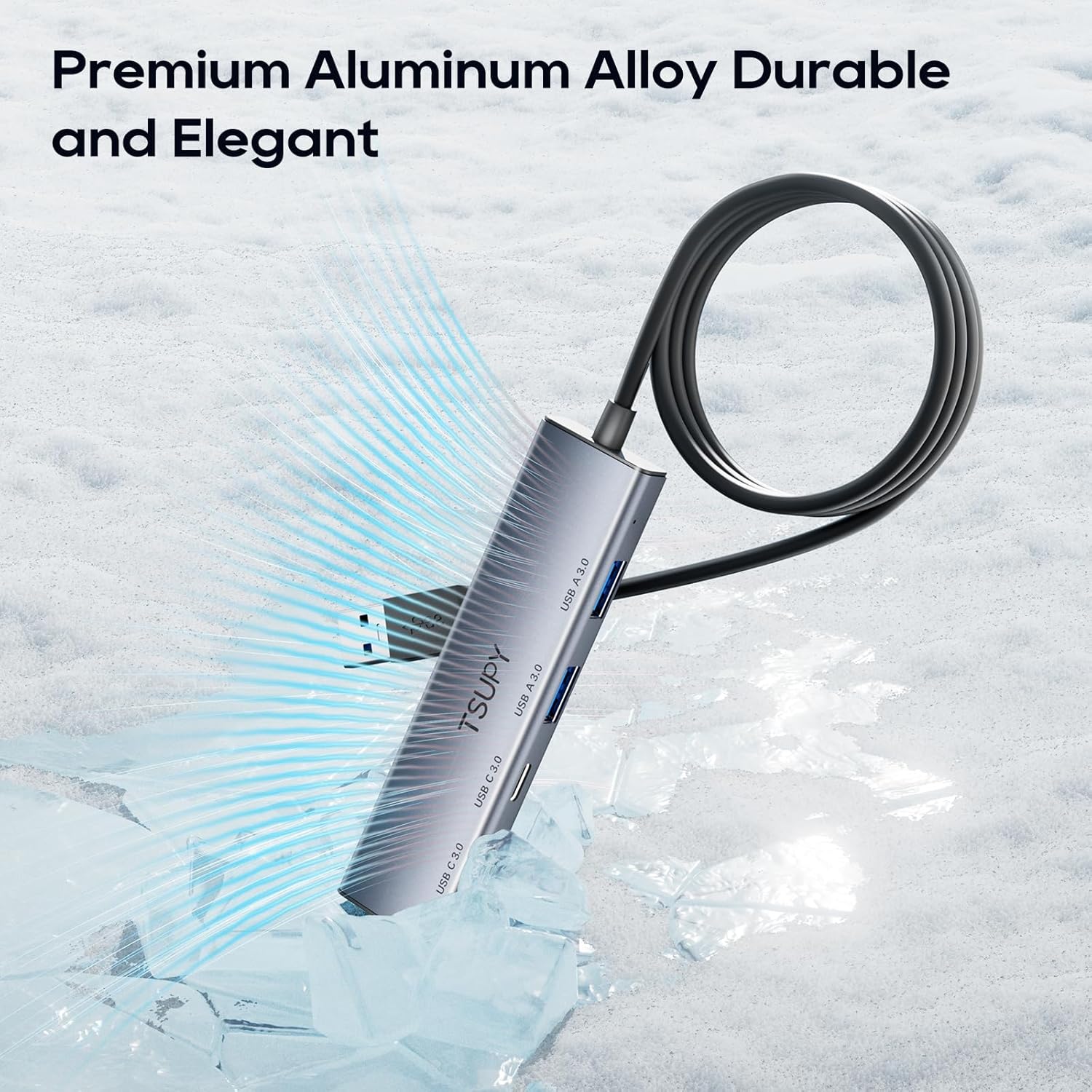 TSUPY Multi USB C USB A 3.0 Hub with 4FT Extended Cable,4 Ports Aluminium USB 3.0 Splitter,2 USB-C & 2 USB-A Ports USB Extender Hub for Laptop, PC, Flash Drive, Mobile HDD,Printer, Mouse, Keyboard
