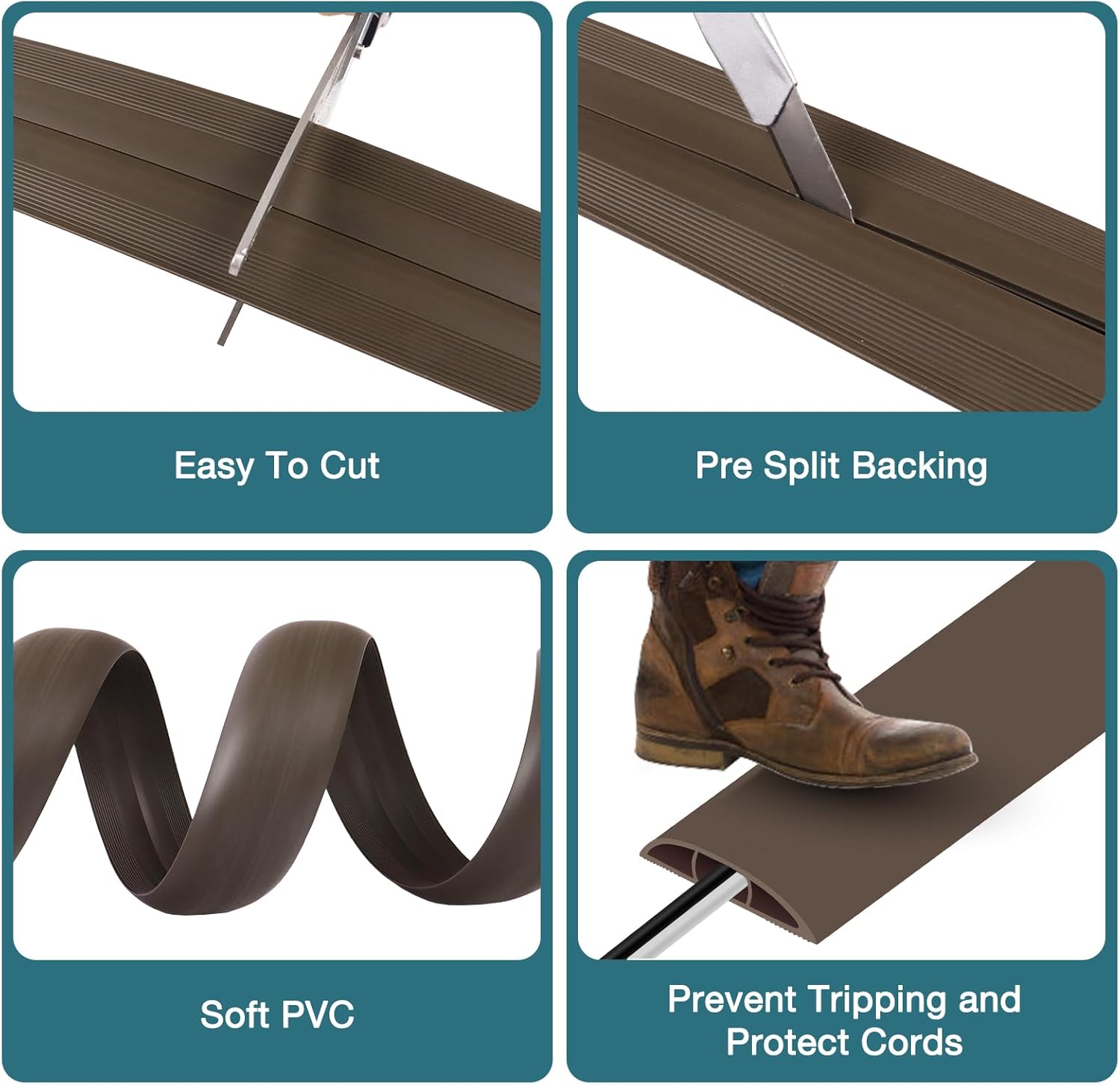 Floor Cord Cover, Cable Protector, 0.63W x 0.31H inches, Wire Cover for Extension Cords, Floor Cable Covers Prevent Cable Trips (Brown, 50-3 Feet)