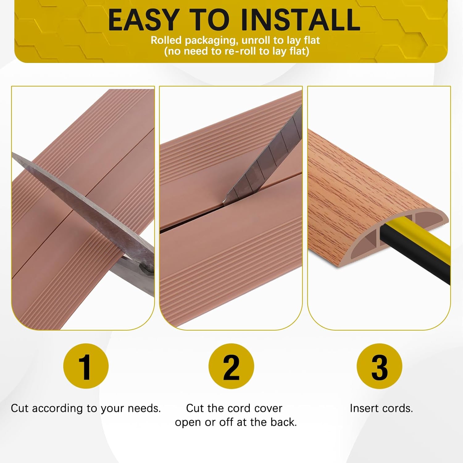 - 【Premium Soft PVC Material】Floor cord covers for wires made of highly elastic soft PVC, comfortable to walk on with bare feet. Durable and non-toxic, no odour. You can install it wherever you want, cord hider floor provides longer protection for wires. It can be easily cut to any desired size or length
