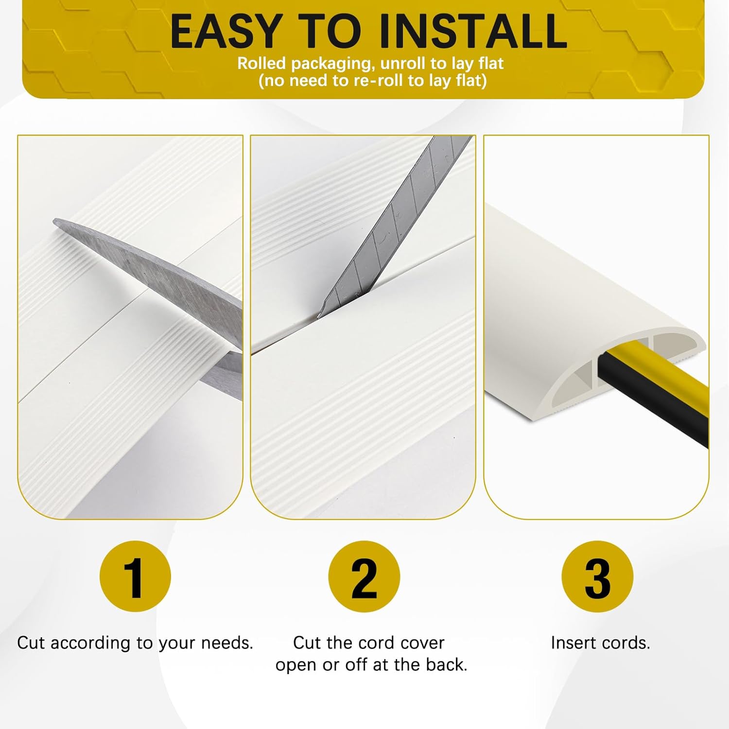 - 【Easy to Use】Floor cord covers is simply cut to length with scissors, slit the back, and insert cables for instant installation. Features a non-slip base with superior grip to stays put on carpets, wood, and tile floors