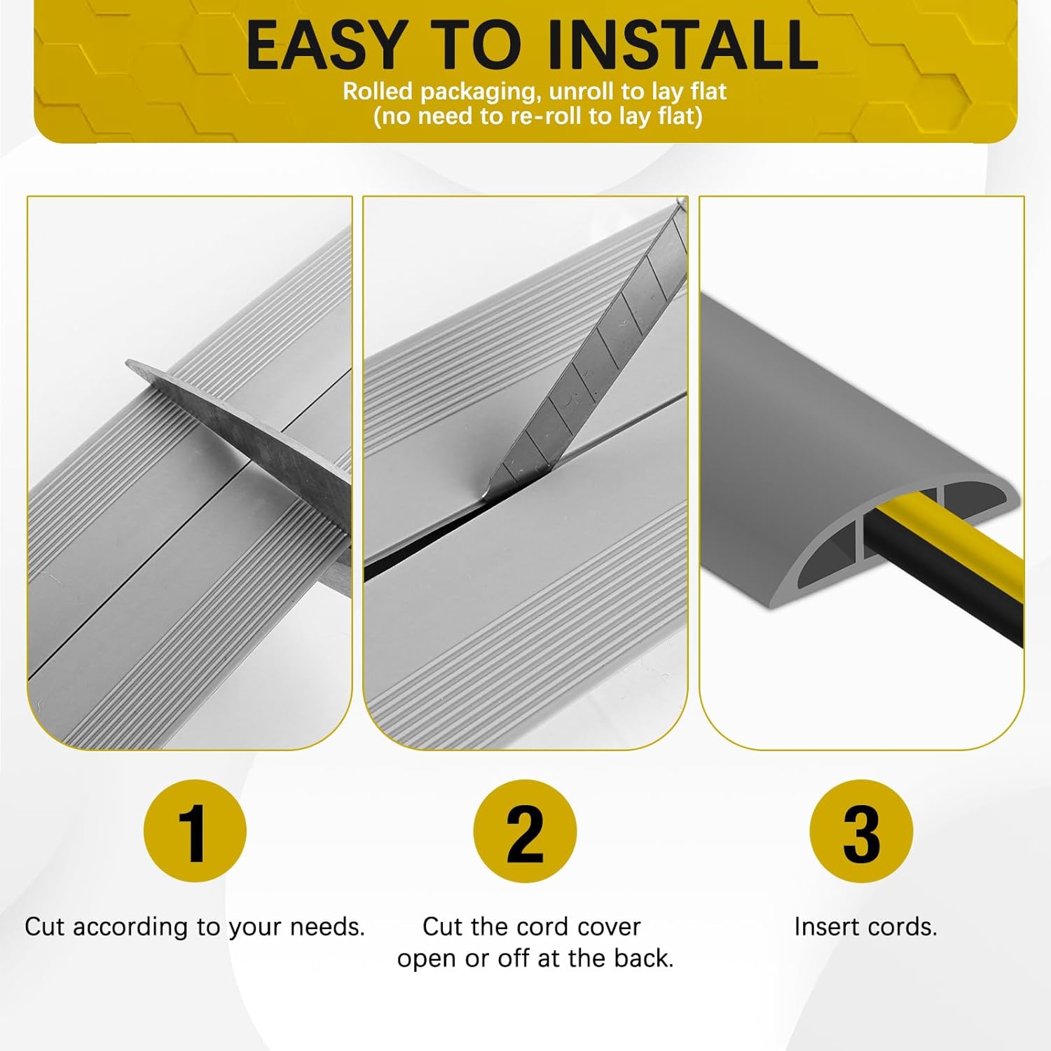 - 【Easy to Use】Floor cord covers is simply cut to length with scissors, slit the back, and insert cables for instant installation. Features a non-slip base with superior grip to stays put on carpets, wood, and tile floors