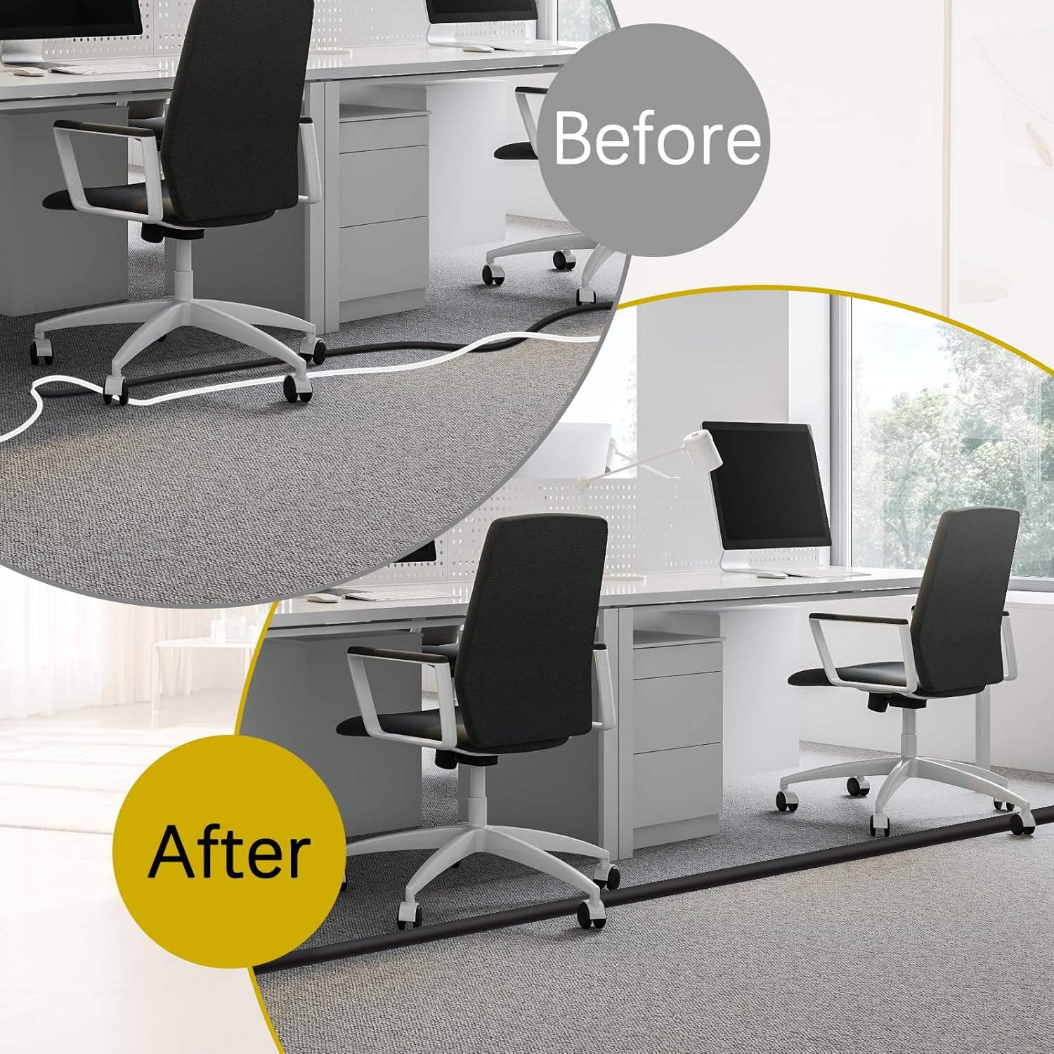 - 【Easy to Use】Floor cord covers is simply cut to length with scissors, slit the back, and insert cables for instant installation. Features a non-slip base with superior grip to stays put on carpets, wood, and tile floors