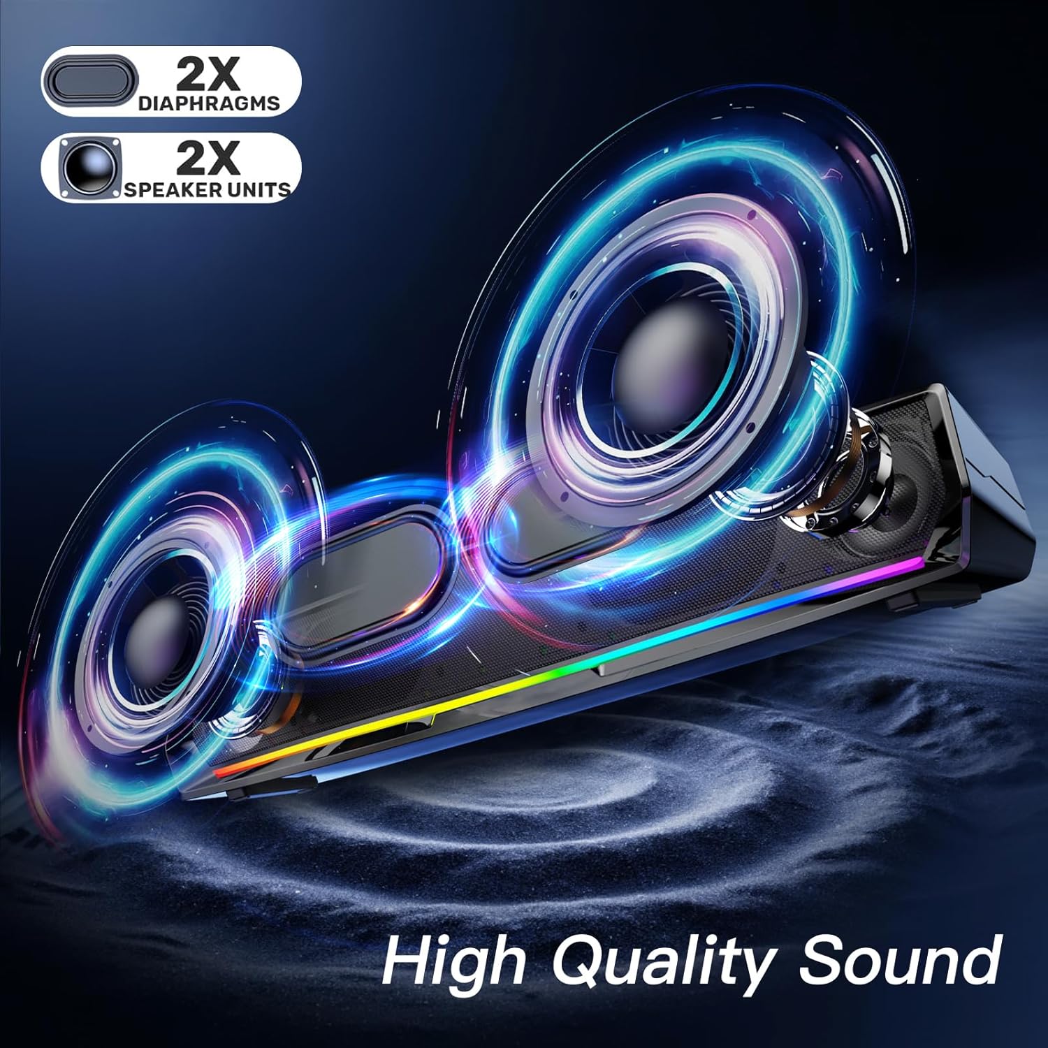 - 【Hi-Fi Sound for Gaming & Entertainment】The computer speaker system features premium dual drivers with dual diaphragms for crystal-clear rich Sound, perfect for PC games,movies,or music.