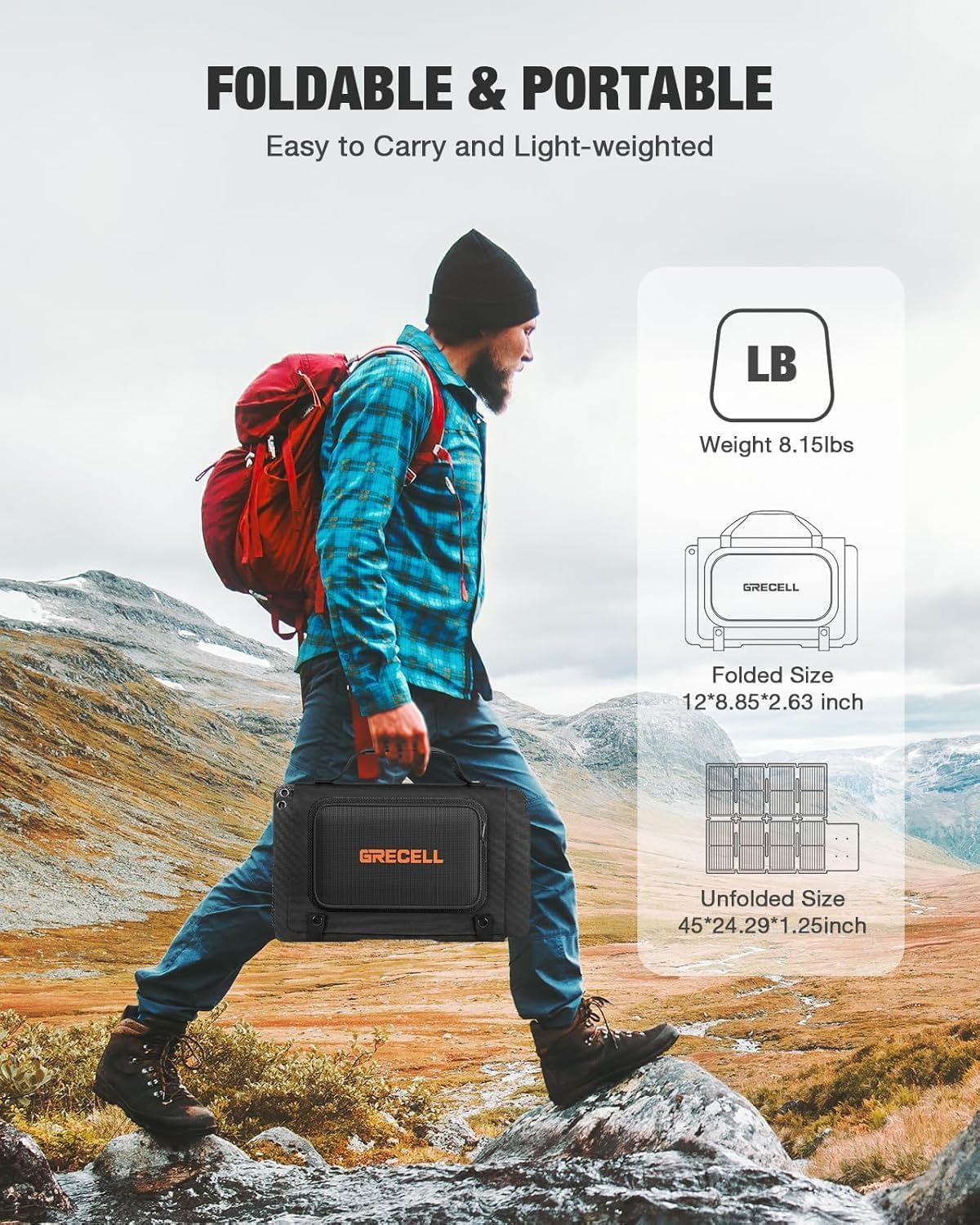 GRECELL 80W Portable Solar Panel, Foldable Solar Panel QC3.0 USB-A &Type-C Port,23% High Efficiency IP67 Waterproof Outdoor Cell Phone Solar Charger for Power Banks Tablets Outdoor Small Power Station