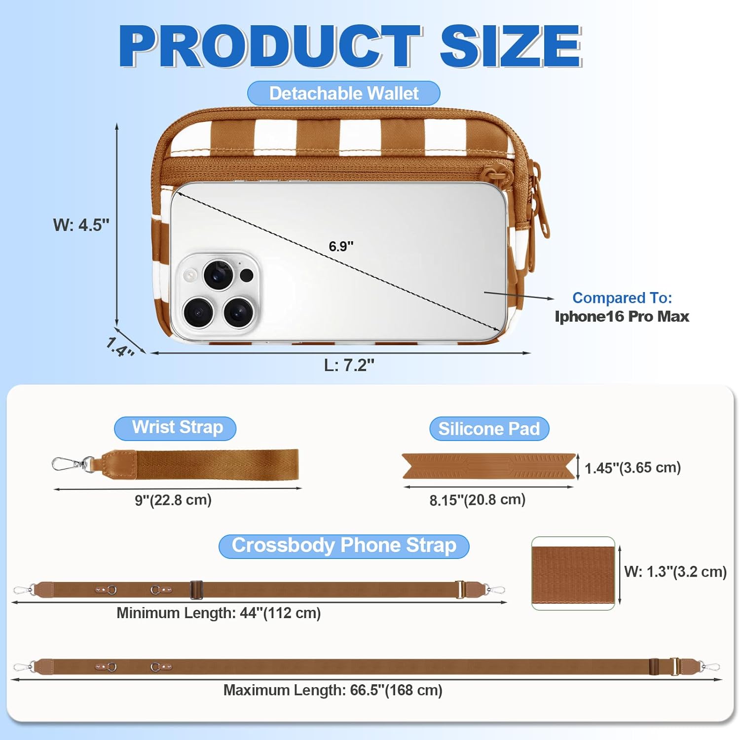 - Customizable Fit for Everyone: This phone strap crossbody is crafted from premiun double-layer nylon, it can be freely adjusted from 44 to 66.5 inches, and features a comfortable 1.3-inch width, providing an ideal fit for all body types - whether you're tall or short, slender or robust. the soft-touch meterial ensures gentle comfort against your skin, while the removable silicone pad ensures all-day comfort when worn crossbody.