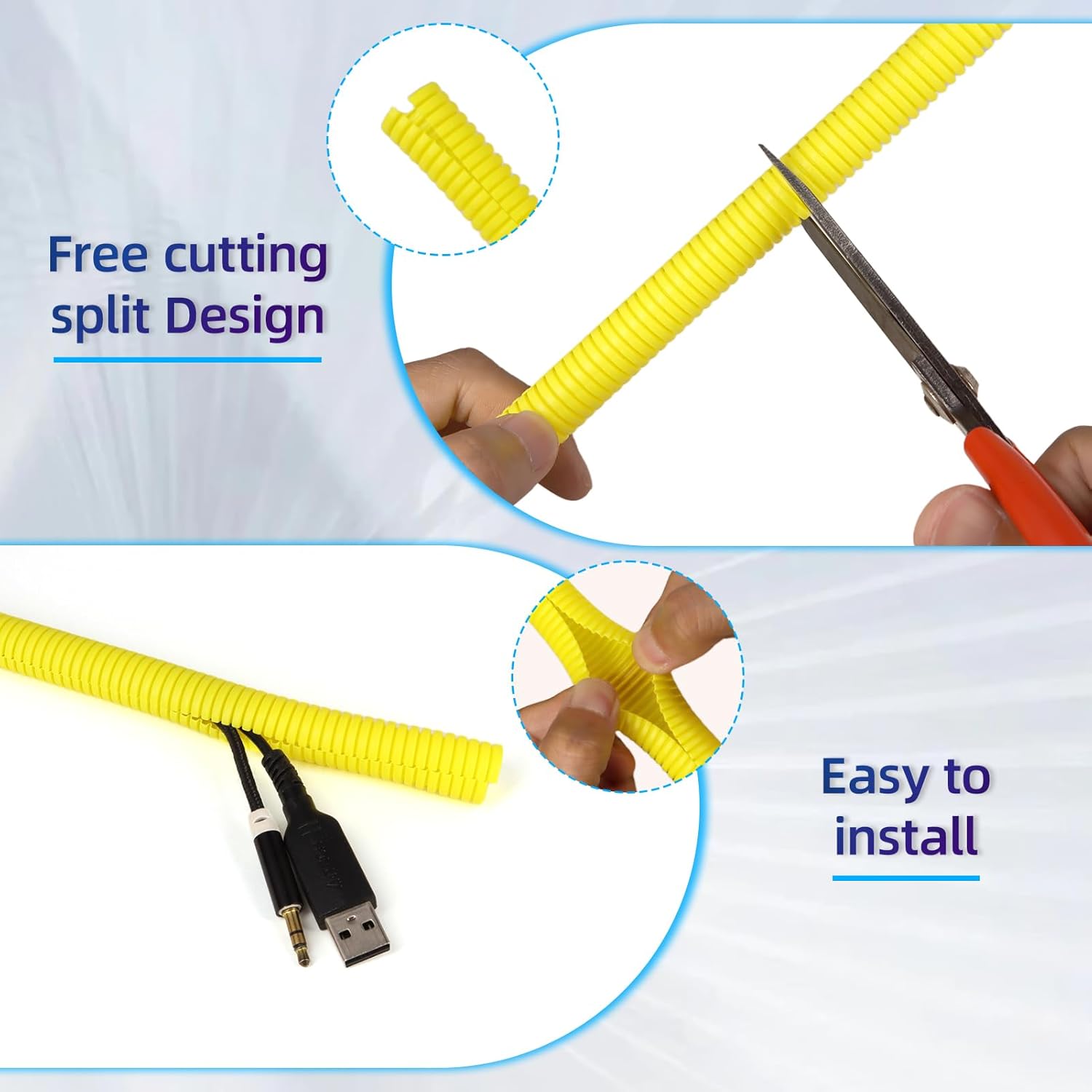 Split Wire Loom Tubing, 10,25ft Cord Protectors from Pets No Chew, Flexible Wire Covers Cord Protectors, Protective Split Cable Sleeve for Automotive Home Industrial Wires(Yellow, 0.46inch-10ft)