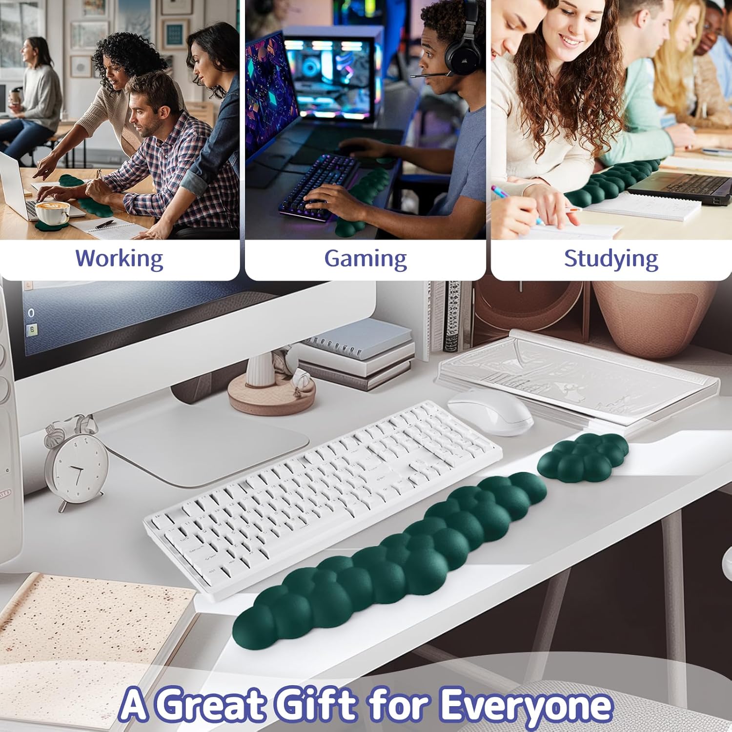 Cloud Wrist Rest for Keyboard and Mouse, Memory Foam PU Leather Keyboard Wrist Rest with Ergonomic Support, Non-Slip Base, Cute Arm Rest Pad & Palm Cushion, Office Desk Accessory, Dark Green