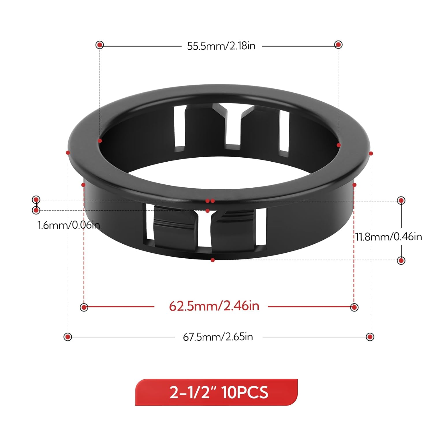 - Dimensions: Model SB-63 (10-piece pack), Inner Diameter: 55mm/2.2inches; Outer Diameter: 68mm/2.6 inches; Height: 11mm/0.45 inches; Mounting Hole Diameter: 62.5mm/2.46inches