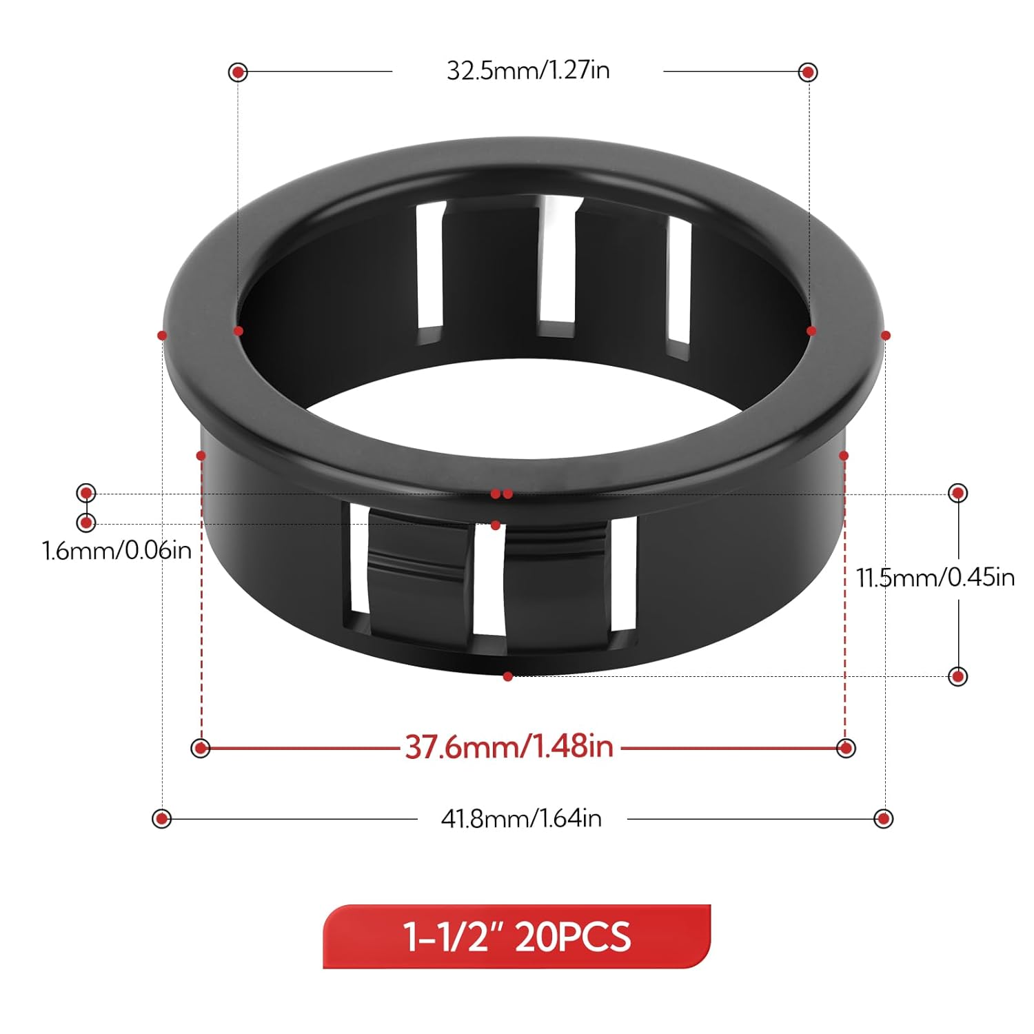 20PCS 1-1/2" Black Cable Snap Bushing Grommet, Snap in Cord Bushing Protect Cables