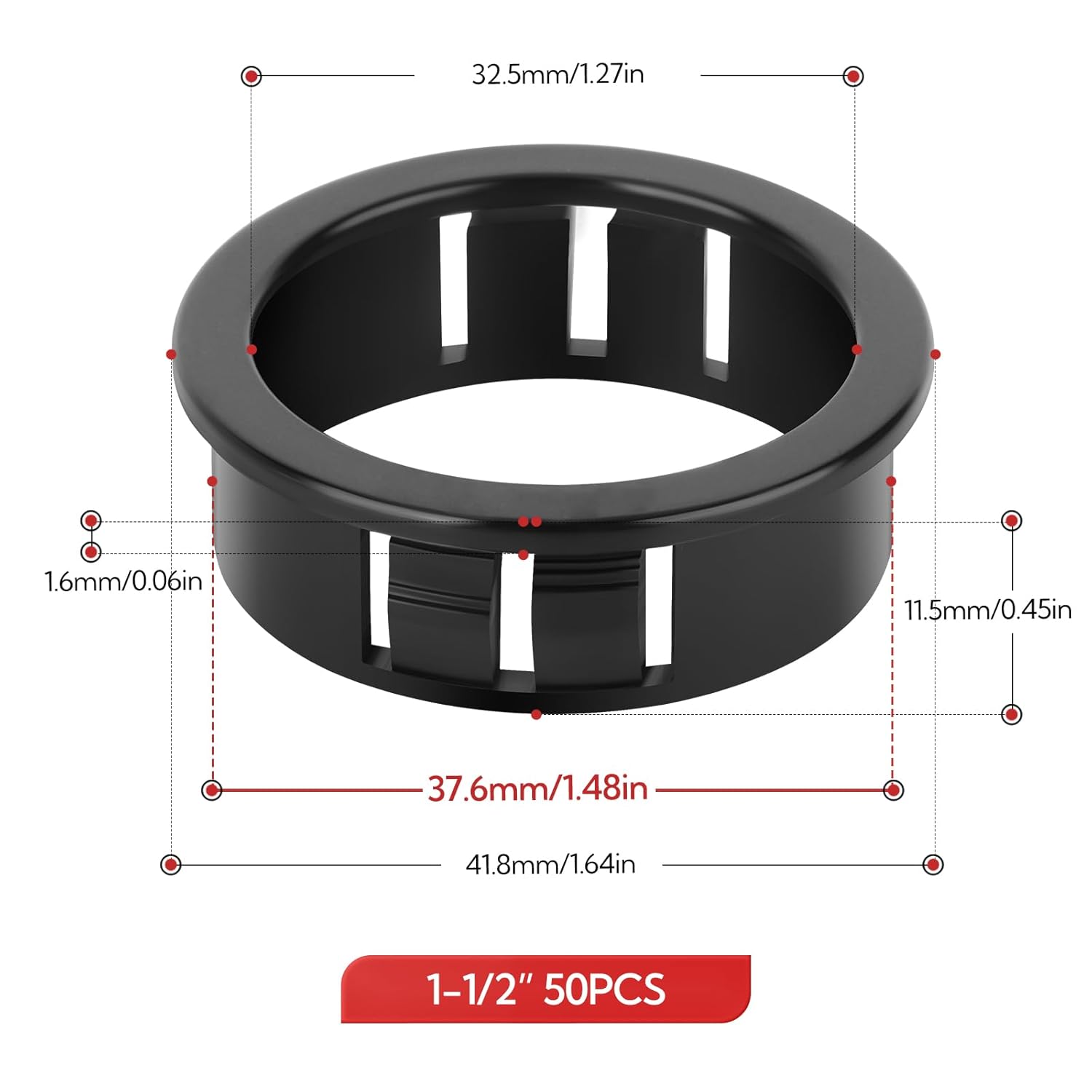 50PCS 1-1/2" Black Cable Snap Bushing Grommet, Snap in Cord Bushing Protect Cables