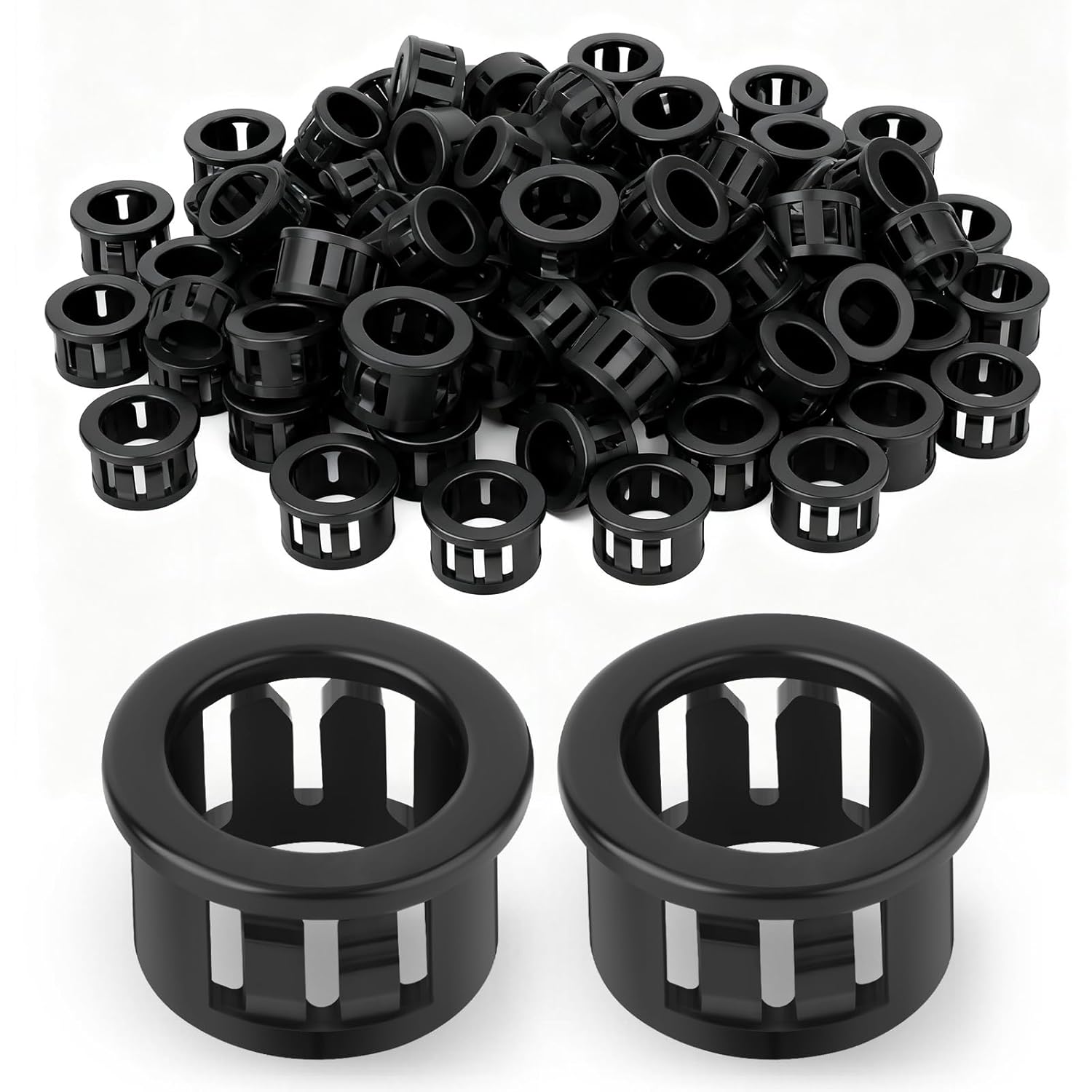 200PCS 1/2" Black Cable Snap Bushing Grommet, Snap in Cord Bushing Protect Cables
