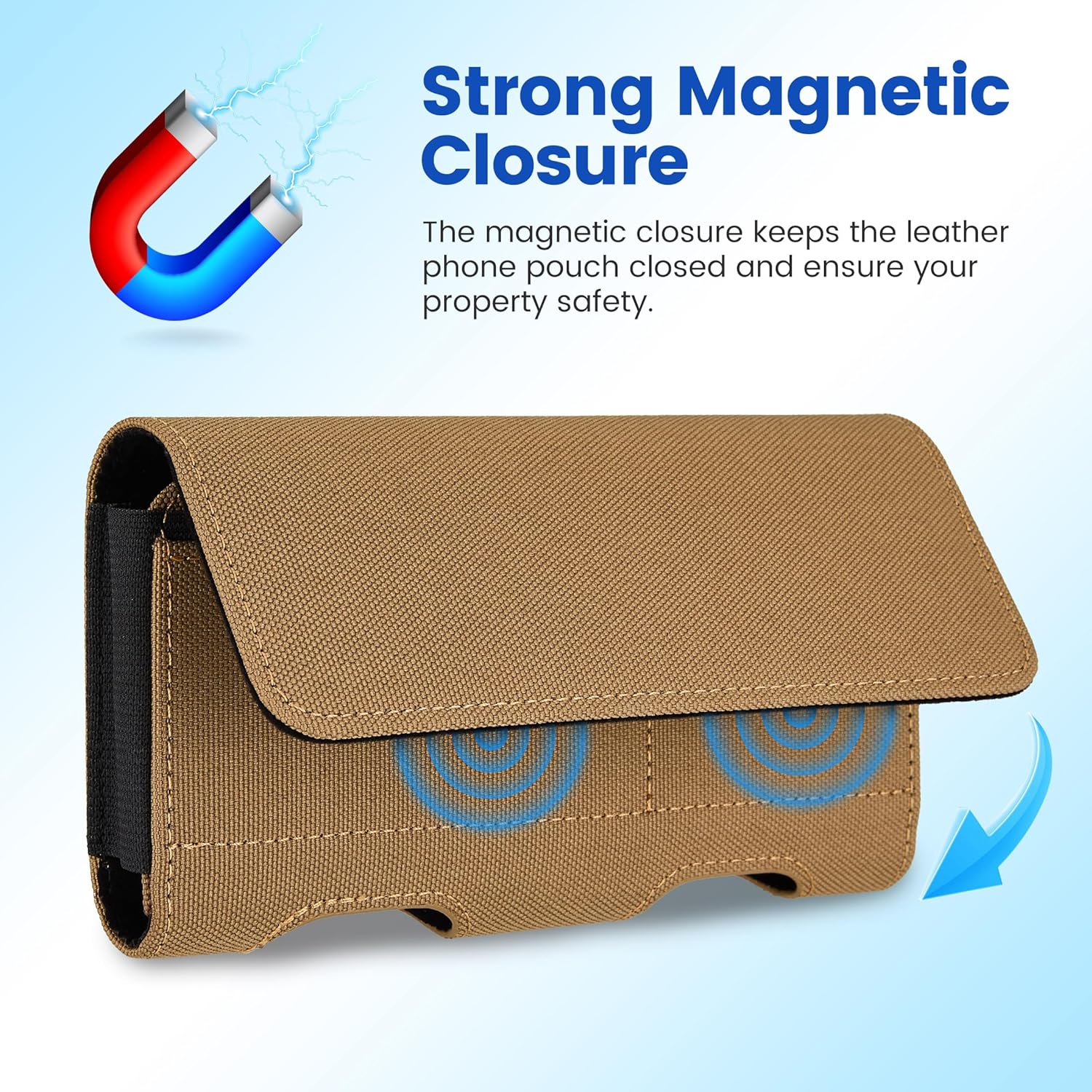 - Durable Nylon Holster with Magnetic Closure --- Made from rugged ballistic nylon, this horizontal phone holster features a reliable magnetic flap for quick, secure access — ideal for everyday use, work, or outdoor activity.
