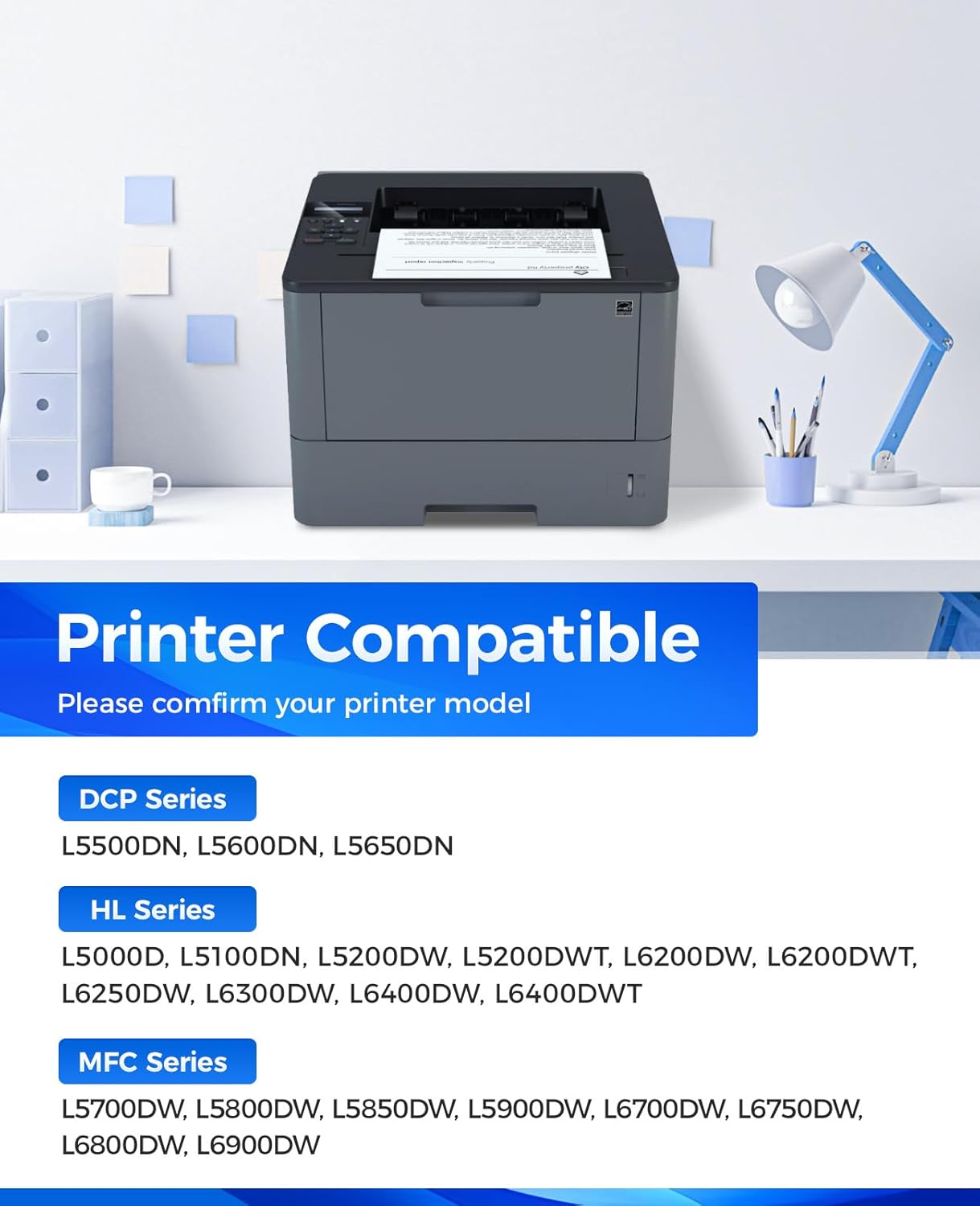 - Compatible Printers: Compatible with Brother DCP-L5500DN DCP-L5600DN DCP-L5650DN HL-L5000D HL-L5100DN HL-L5200DW HL-L5200DWT HL-L6200DW HL-L6200DWT HL-L6250DW HL-L6300DW HL-L6400DW HL-L6400DWT MFC-L5700DW MFC-L5800DW MFC-L5850DW MFC-L5900DW MFC-L6700DW MFC-L6750DW MFC-L6800DW MFC-L6900DW Series Printer.