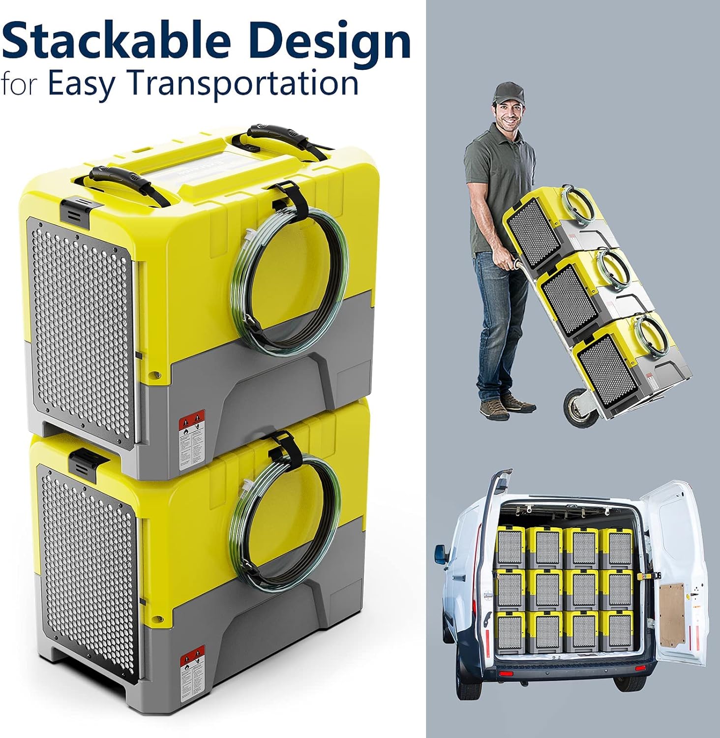 - App Control & Dry anywhere: MONITOR THE RESTORATION PROCESS ON THE GO! Our free AlorAir DryEasy mobile app is included with the unit upon purchase. Commercial Dehumidifier, Moisture Removal Capacity 180 PPD at Saturation condition and 85 Pint at AHAM only with 5.62A, Super-Efficient System, fits into small spaces, Secure, compact stacking – transport multiple units on a hand truck.