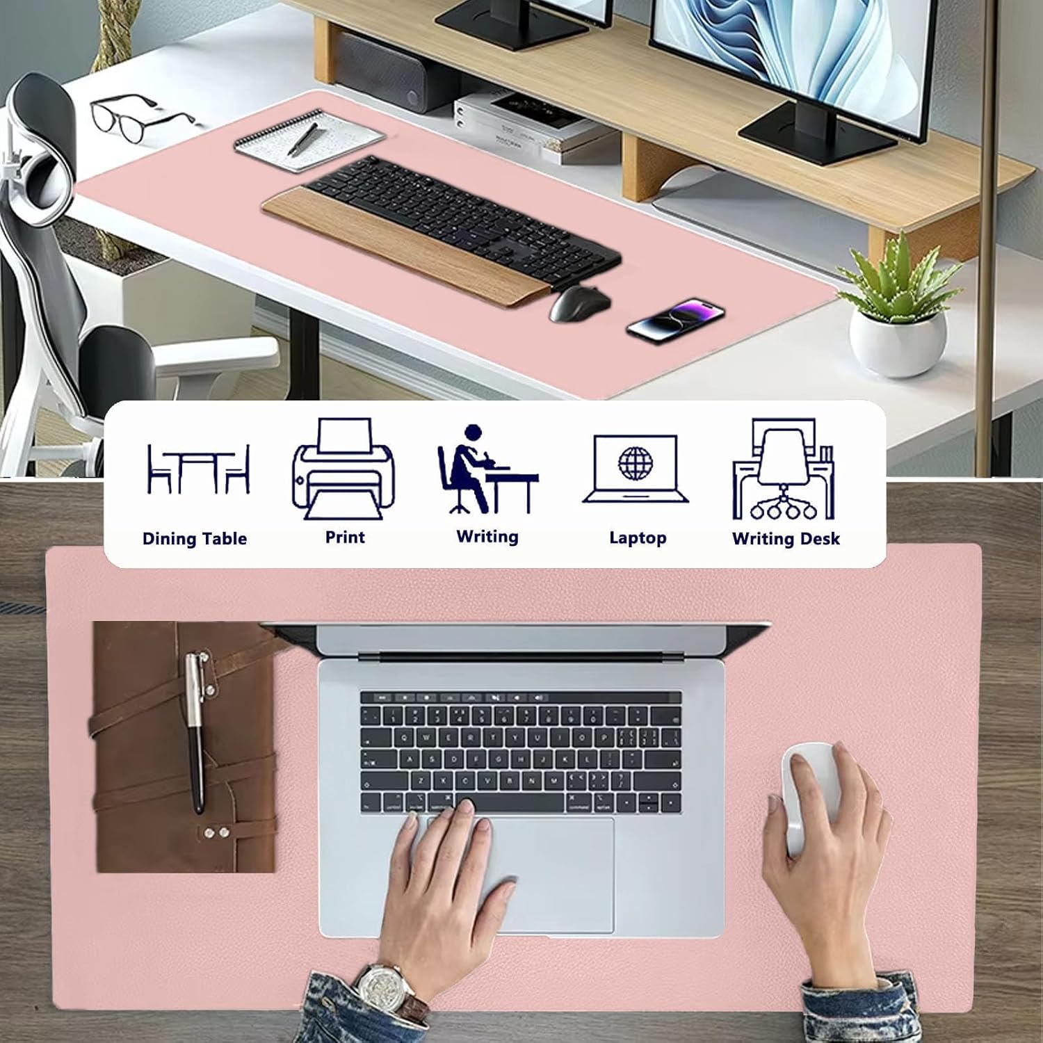 PU Leather Desk Pad Protector Gaming Mouse Pad Non Slip Desk Mat for Keyboard and Mouse Waterproof Desk Writing Pad for Office and Home Desk Accessories(Pink, 47.2 * 17.7)