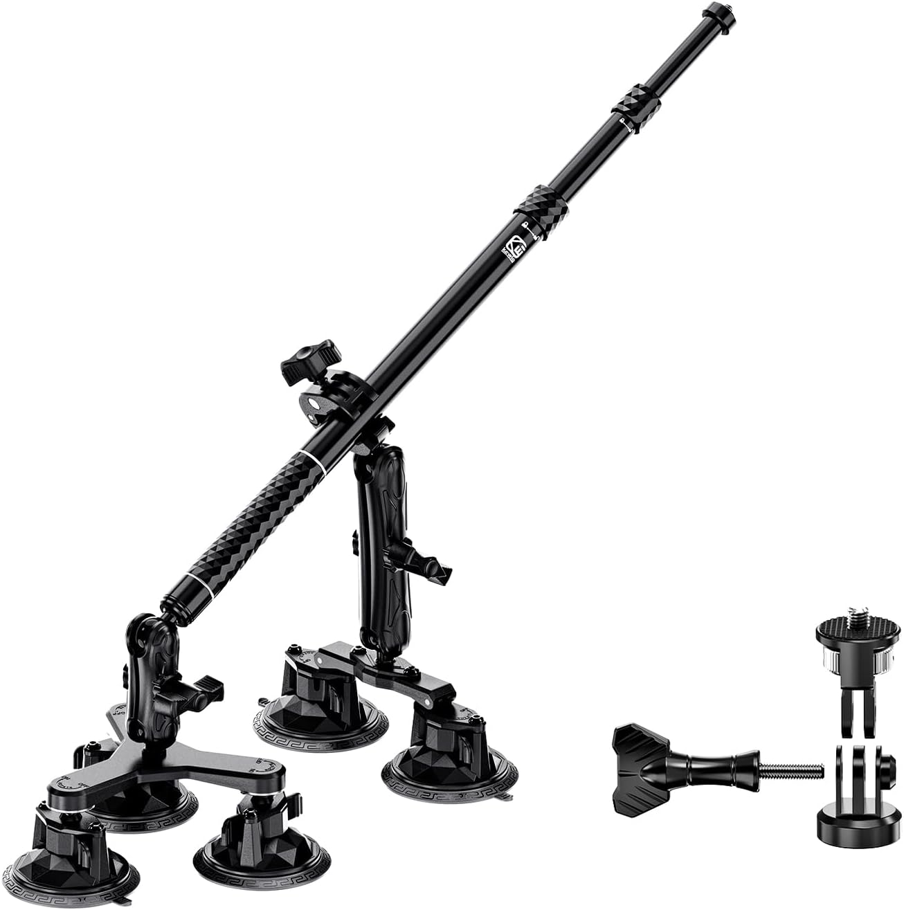 Suction Car Mount for GoPro/Insta360/DJI | Aluminum Alloy Extendable Selfie Stick with Multi-Joint Flexible Arm | Upsized Strong Suction Mount Kit Includes Tripod Adapter