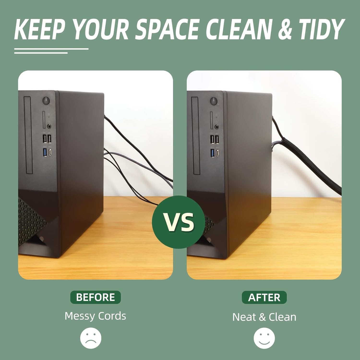 - MULTIPLE APPLICATIONS: Our cord sleeve ensures that wires stay tidy and reduces clutter and tripping hazards, making them ideal for desks, TVs, gaming setups, routers, and car wiring. Ideal for organizing and protecting cables in home, office, or industrial applications.