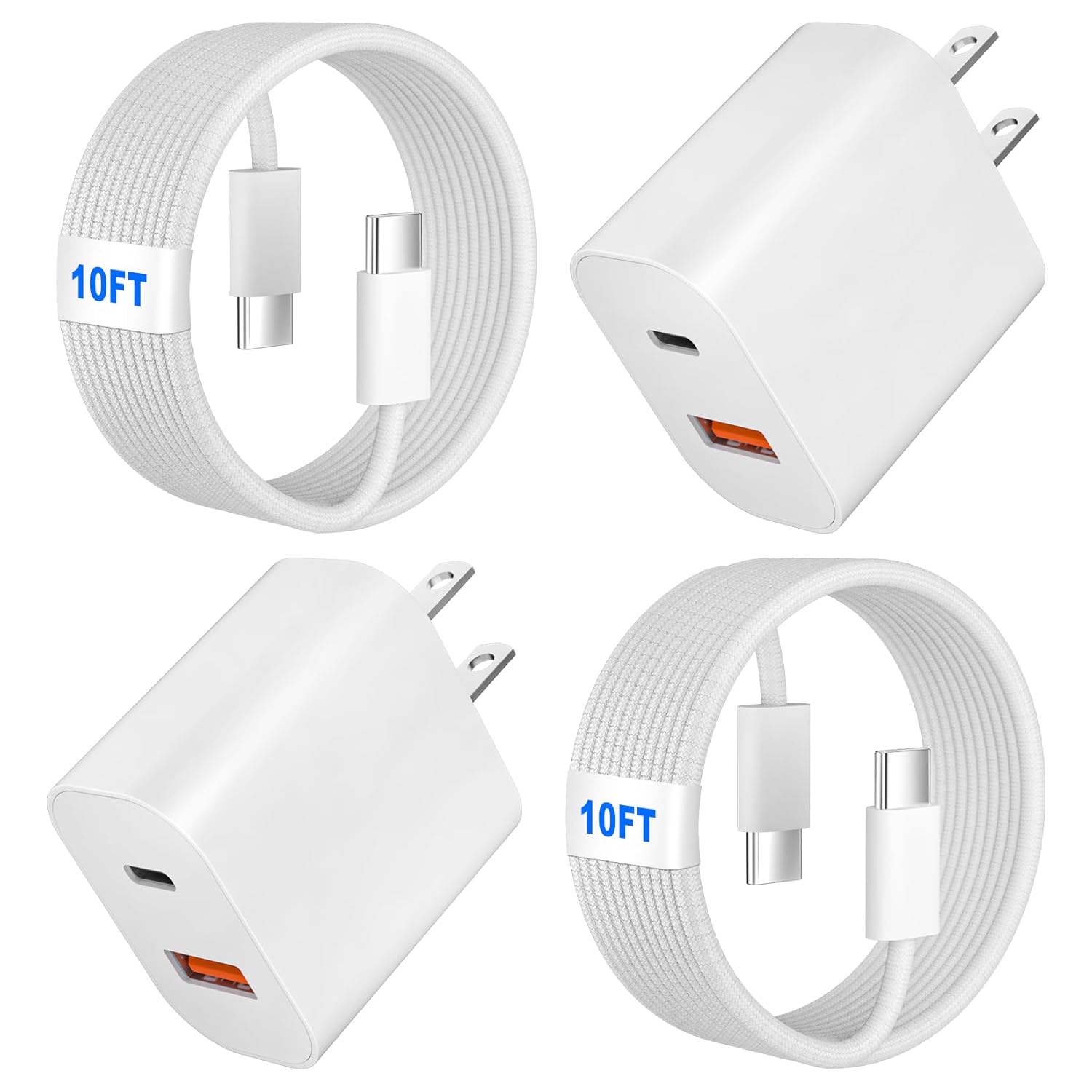 - Included Components : 2* 20W Dual Port A/C Fast Charger Block,2* 10FT Woven USB C Charging Cord