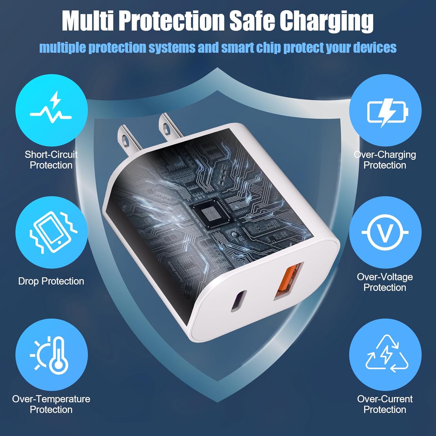 - [iPhone 16 / iPhone 15 Charger Safety and Durable] The iPhone 16 / iPhone 15 USB C Charger Fast Charging Block Adapter Equip With an integrated intelligent Chip,So USB C Wall Charger Block Can Prevent Various Situations Such as Over-Charging,Over-Voltage and Over-Current.The iPhone 16 / 15 Woven Charger Cable Cord is Made of High Quality Material,Which Has Excellent Electrical insulation and Protects Your Electrical Safety and the Health of the Device's Battery During the Charging Process.