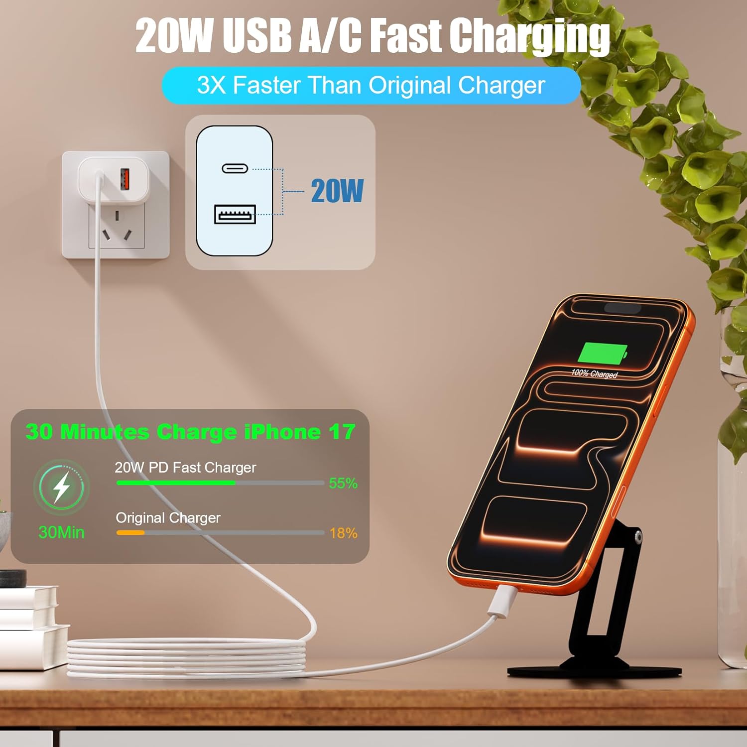 - [Dual USB A/C Charger Fast Charging Block] Dual Port USB A/C Charger Fast Charging Block Can Charge Your iPhone 16 15 Pro Max at The Same Time.USB Type C Charger Fast Charging Can Charge Your iPhone 16 / iPhone 15 to 50% in Half an Hour.The Charging Speed is 3 Times Faster Than Traditional Plugs,Saving You More Than Half of the Charging Waiting Time,The iPhone 16 / iPhone 15 USB C Charger is Exquisitely Designed and Easy to Carry,Suitable for Various Scenarios Such as Home,Office,and Travel