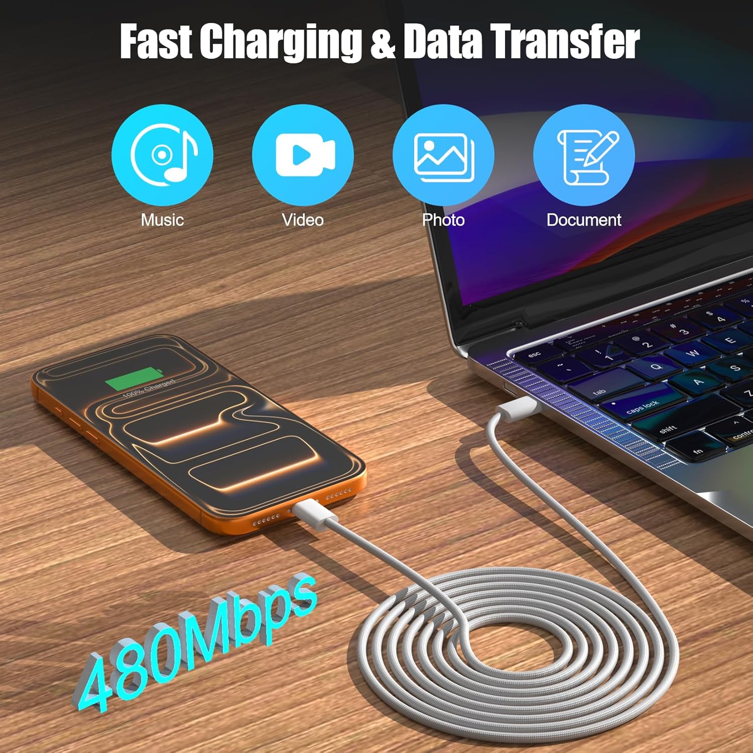 - [10FT Woven USB C Charger Fast Charging Cable Cord] 10FT USB Type C to USB Type C Nylon Braided Data Cable Can Be Used For Fast Charging of Your iPhone 16 / iPhone 15 or iPad Pro / iPad Air and Also Supports Up to 480Mbps Data Transmission Between Your Two USB Type C Devices.The Nylon Woven USB Type C Charger Fast Charging Cable Cord Has The Characteristic of Anti Winding and Not Easy to Break,and Can be Bent and Folded More Than 12000 Times Without Damage