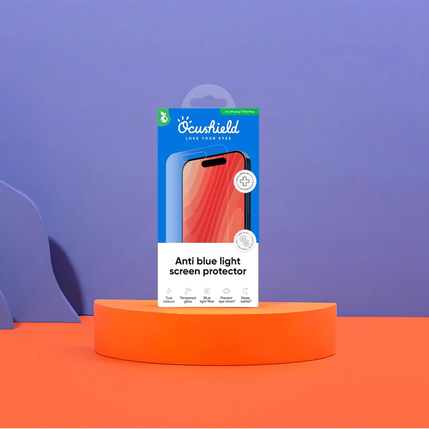 Ocushield Screen Protector for iPhone 17 Pro Max – Blue Light Tempered Glass, Blue Light Filter, 95% Transparency, Bubble-Free Install, Scratch-Resistant, Case Friendly
