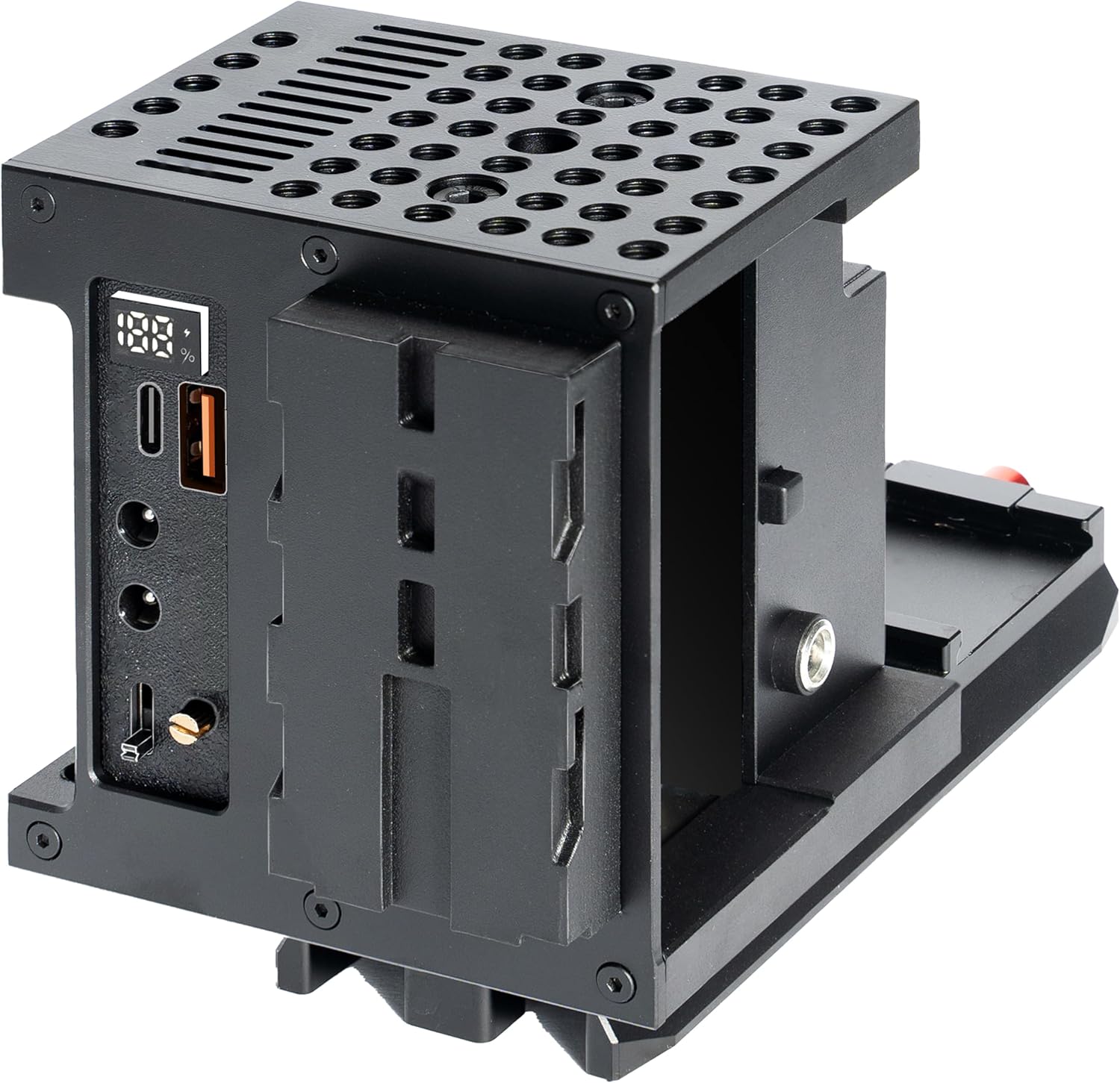 - Aluminum alloy modular, highly integrated 6-way power system + cooling system + NPF male port + NPF female port (with F970 battery) with exquisite design