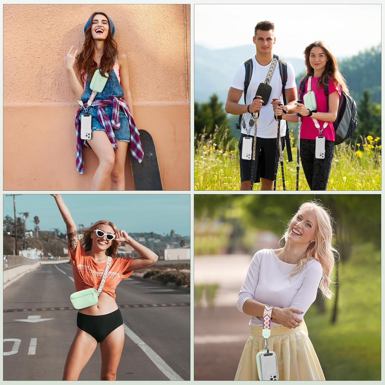 - Universal Fit, Multi-Function: This phone lanyard crossbody is designed to be compatible with smartphones with full-coverage cases. Moreover, it's not just for phones! You can easily hang cameras, wallets, keys, bags, water bottles. the detachable wallet offers generous storage for your cash, cards, wireless earbuds, cosmetics, tissues, and other small essentials, it's an perfect partner for your outdoor activities, travels and hikes.