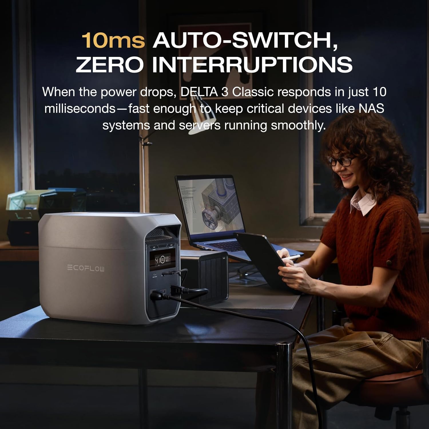 - <10ms UPS: Protect sensitive electronics like PCs, servers, and medical devices. DELTA 3 Classic automatically switches to battery in under 10ms, preventing downtime, data loss, or interruptions.