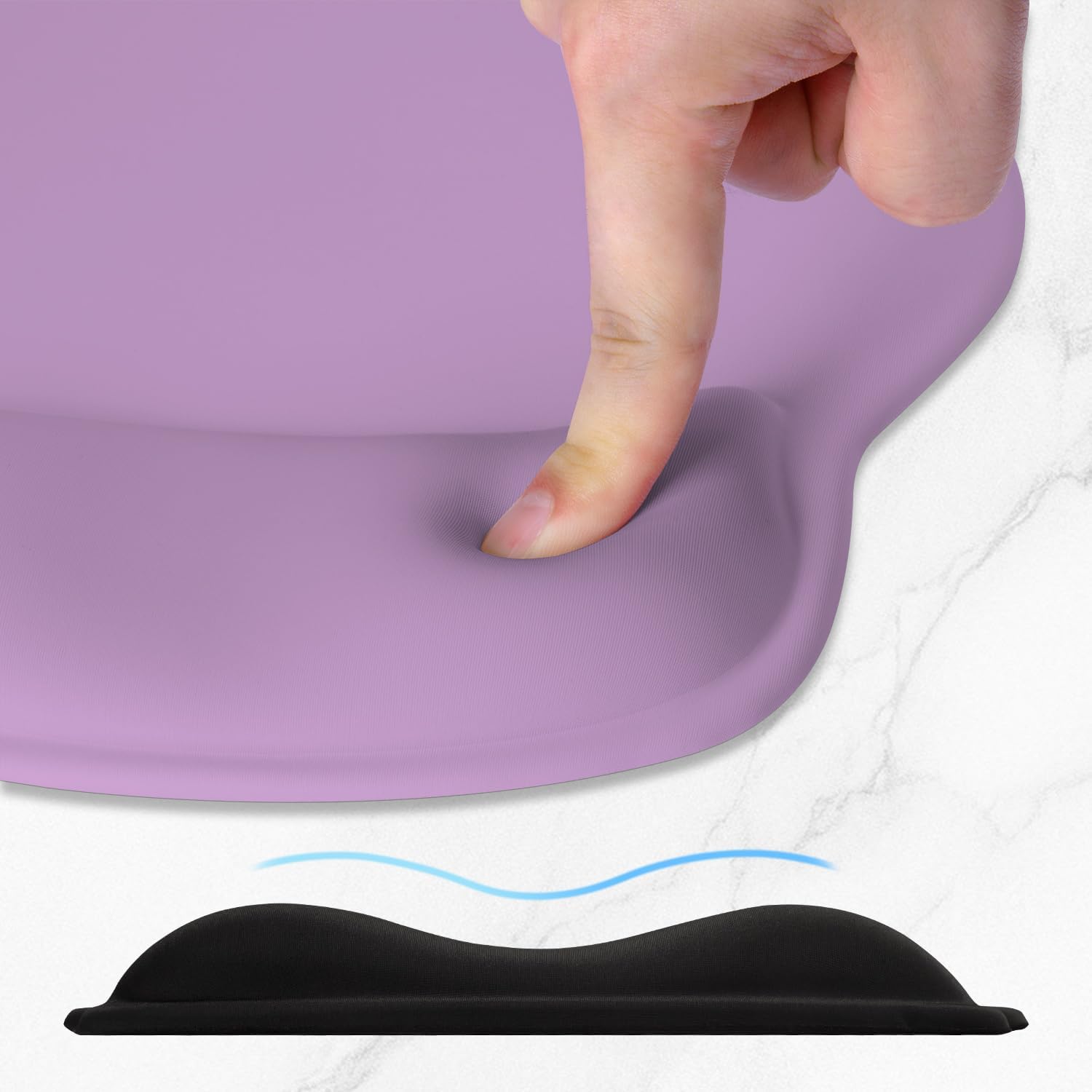 ITNRSIIET Ergonomic Mouse Pad with Wider Memory Foam Wrist Rest +17%, Curved Cushion Reduces Pressure 20%, Pain Relief, Non-Slip, Smooth, Cute Color Desk Accessory, 9.85 x 9 inch, Lavender Purple